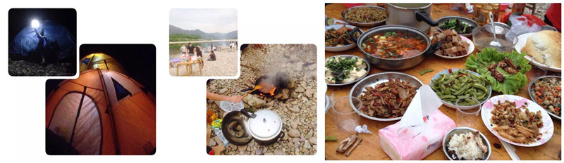 選址、撐桿、掛賬、拉繩,大家兩兩分組,將帳篷一一掛好;壘灶、撿柴、生火、炒菜,大家齊心協(xié)力,做出一桌桌美味菜肴。