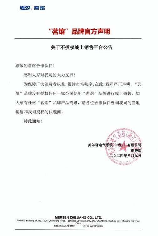 “茗熔”品牌官方聲明|關于不授權線上銷售平臺公告