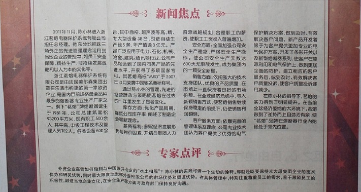 恭賀我司總經(jīng)理榮獲樂(lè)清十大經(jīng)濟(jì)新聞人物之一!