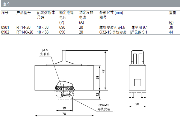 其中RT18N、RT18B 在同一外形尺寸的底座上,可供用戶選擇配置五種不同尺碼的熔斷體;RT18N 有兩路進出線,一路配置相