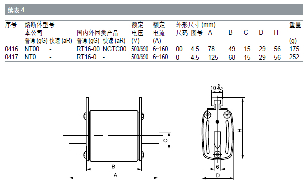 本系列熔斷體適用于交流50Hz、額定電壓至1140V、額定電流至1250A, 主要用在電氣裝置中作線路過載和短路保護(gG/gL) ;還可派生為半導體設備的短路保護(aR) 以及電動機短路保護(aM)。 本系列熔斷體額定分斷能力至120kA。 本系列專用于連接或隔離N 相( 中性點) 的帶有絕緣搭扣的( 裝配于尺碼為00~3的熔斷器底座) 刀形動觸頭( 由銅母線制)供用戶選用。 本系列熔斷體符合國家標準GB13539 和國際電工委標準IEC60269 及EN60269 標準。
