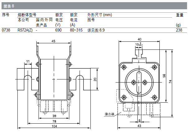 體二端采用點(diǎn)焊與觸頭牢固電連接。熔斷體型式有方管刀形觸頭和方管平板形觸頭兩種。熔斷體可帶指示器或撞擊器,當(dāng)熔體熔