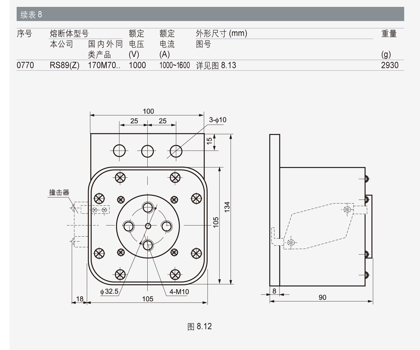 本系列熔斷體額定分斷能力至100kA。