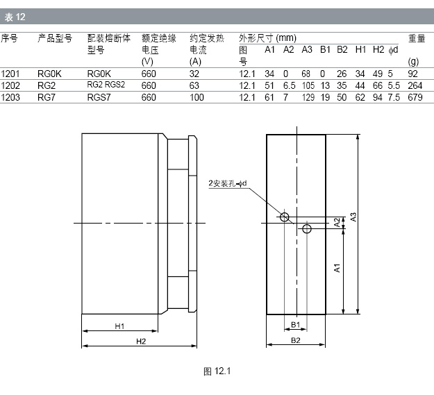 此類熔斷器底座有兩種結(jié)構(gòu):一種由載熔件和支持件/底座 組成( 圖12.1),配裝的螺栓連接式熔斷體先固定在載熔件上,再 插入支持件/ 底座的靜觸頭上形成一個完整的熔斷器;另一種不 帶載熔件,將配裝的螺栓連接式熔斷體直接用螺栓緊固在底座的 靜觸頭上。根據(jù)用戶需要,本公司還承制其他型式的非標熔斷器 底座。