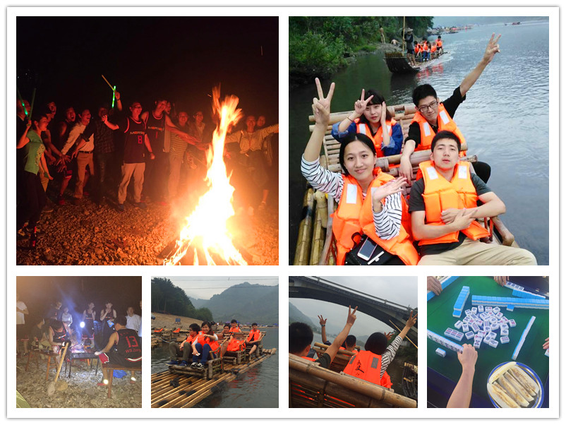 這是茗熔六十人兩天一夜的集體野炊露營活動(dòng)。在結(jié)束了白天的DIY野炊、乘竹筏、打麻將、玩游戲之后,大家迫不及待地燃起篝火,舉著熒光棒,圍在篝火前比拼歌技。當(dāng)場(chǎng)比出了一二三名及團(tuán)隊(duì)獎(jiǎng)。我們才沒有暗示獲獎(jiǎng)?wù)哒?qǐng)客吃飯。