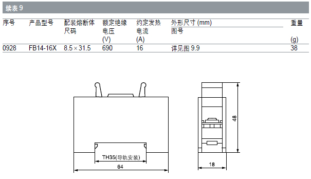 應(yīng)尺碼的熔斷體,另一路為一個(gè)雙斷點(diǎn)常開觸頭,單個(gè)支持件具有隔離電源的功能;RT18 型支持件均為TH35 mm的導(dǎo)軌式安裝,其中RT18L 還帶有安全鎖扣裝置,確保支持件斷開狀態(tài)不發(fā)生誤操作。