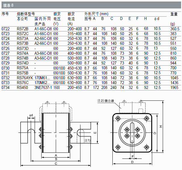 斷時(shí),指示器/ 撞擊器立即動(dòng)作,顯示熔斷體已熔斷( 指示器)并推動(dòng)微動(dòng)開關(guān)( 撞擊器),發(fā)出各種信號(hào)或自動(dòng)切換電路。